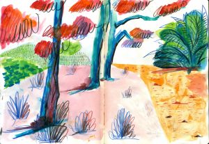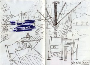 Pequeña muestra de mi lado inquieto. Siempre en pequeño formato, siempre en cuaderno, siempre acompañando mis días lejos del estudio.