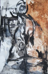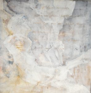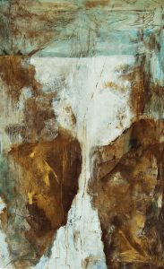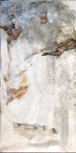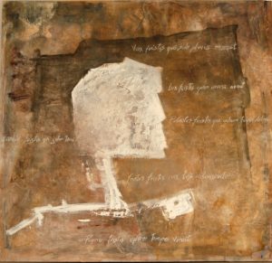 El enfrentamiento a los materiales de manera primaria, carente de reflexión, es el origen de esta serie, donde la técnica, el aprovechamiento del soporte, la abstracción y el simbolismo adquieren la solidez de la intemporalidad, creando un lenguaje personal donde las manchas y los trazos parecen encerrar rostros, máscaras, objetos, alegorías, evidencias, secretos… producto de vivencias, pensamientos y creencias.